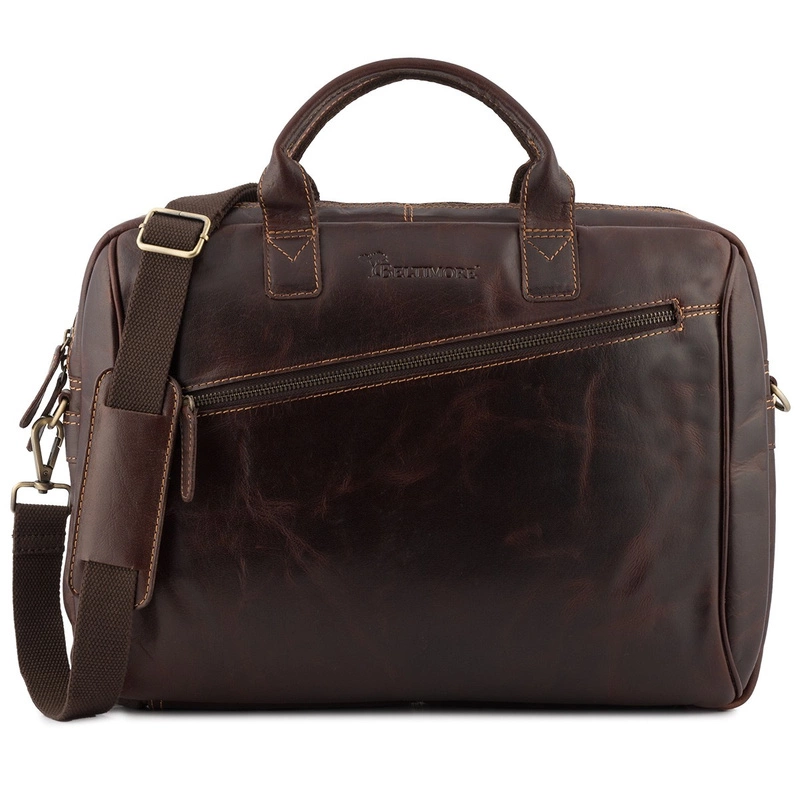 Ekskluzywna, wysokiej jakości, męska torba serii vintage na laptopa na ramię marki Beltimore® wykonana z wysokiej jakości skóry naturalnej buffalo, w eleganckim, ciemno-brązowym kolorze.