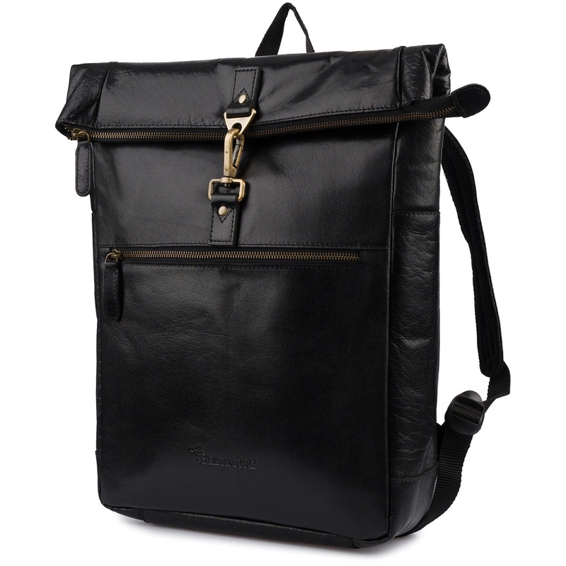 Ekskluzywny, plecak skórzany serii vintage na laptopa marki Beltimore® wykonany z wysokiej jakości skóry naturalnej typu nubuk, w eleganckim, czarnym kolorze.