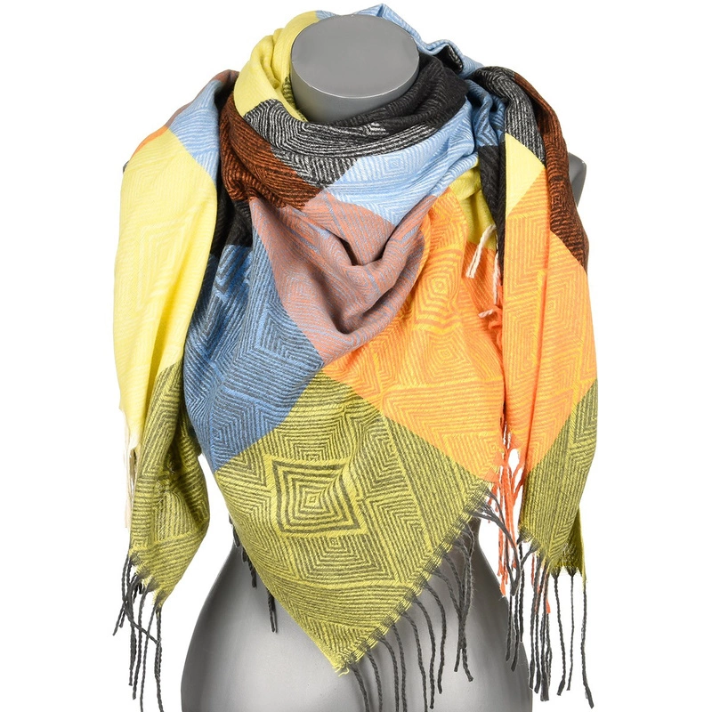 Modny, duży, przyjemny w dotyku szalik damski , wzorzysty w modnej jesiennej kolorystyce zakończony frędzlami, idealne uzupełnienie eleganckiej jak i casualowej stylizacji