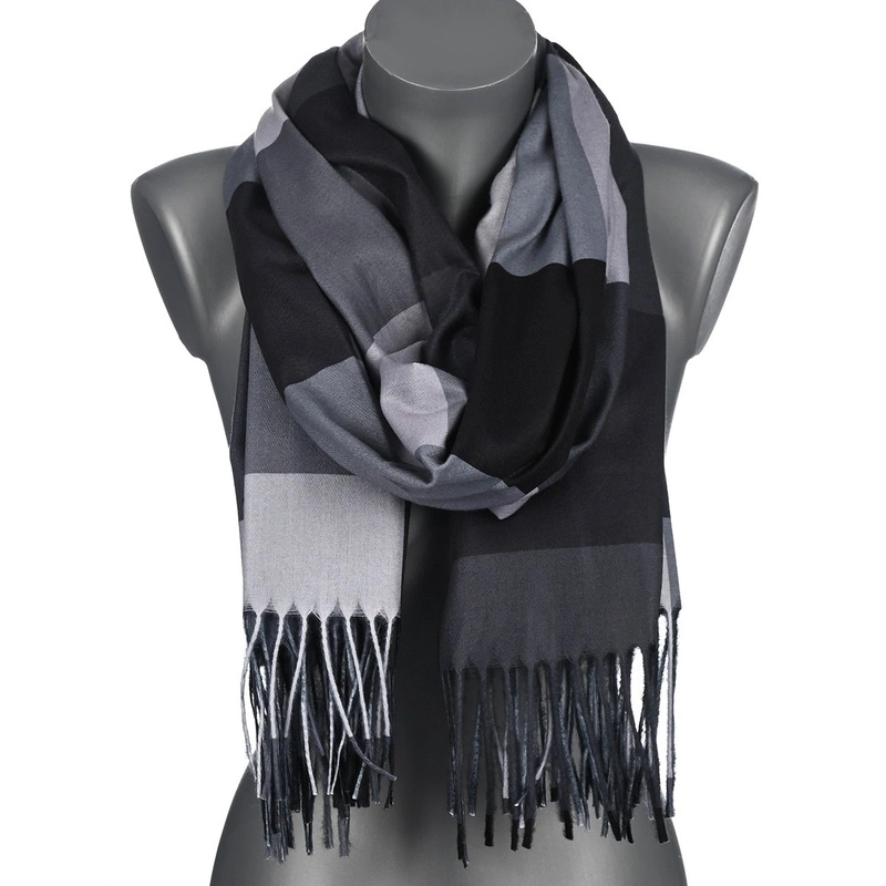 Czarny piękny elegancki szalik damski szal ciepły modna krata RC-1