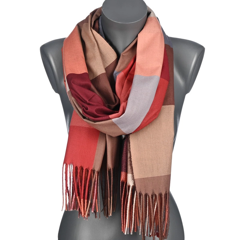 Pomarańczowy piękny elegancki szalik damski szal ciepły modna krata RC-1