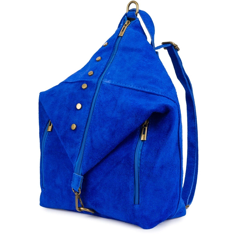 Włoski Stylowy Plecak Damski Skórzany Zamsz A4 chabrowy W14