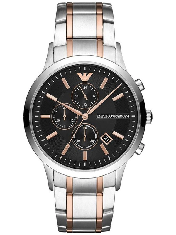 Męski zegarek Emporio Armani AR11165 to stylowy męski zegarek, idealny zarówno do eleganckiego ubioru, jak i do noszenia na co dzień. Bransoletka oraz koperta wykonane zostały ze stali szlachetnej w kolorze srebrnym. Na czarnej tarczy zabezpieczonej mineralnym szkłem znajdziemy datownik wskazujący dzień miesiąca oraz subtarcze będące wskazaniami chronografu oraz czasu dobowego, a także subtelne logo marki. Zegarek Emporio Armani AR11165 trafi w gust każdego mężczyzny i będzie idealnym prezentem na każdą okazję. Klasa wodoszczelności czasomierza to WR50, co gwarantuje szczelność zegarka w przypadku drobnych zachlapań.