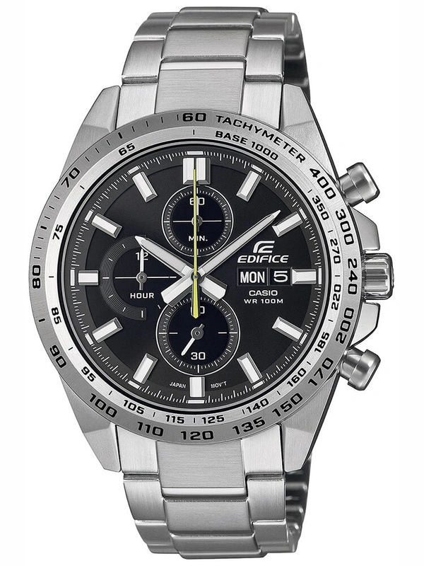 Zegarek Casio Chronograph EFR-574D-1AV to dynamiczny czasomierz o sportowym charakterze, wyposażony w precyzyjny chronograf. Dzięki wodoszczelności do 100m, zegarek gwarantuje niezawodną ochronę przed wilgocią. Wskazówki czasomierza są dodatkowo podkreślone fosforyzującą farbą Neobrite, co ułatwia odczyt godziny nawet w zacienionych miejscach. Zegarek ten posiada także datownik umieszczony na godzinie 3, dodając funkcjonalności i stylu do codziennego użytku. Całość wykonana jest ze stali nierdzewnej w kolorze srebrnym.
