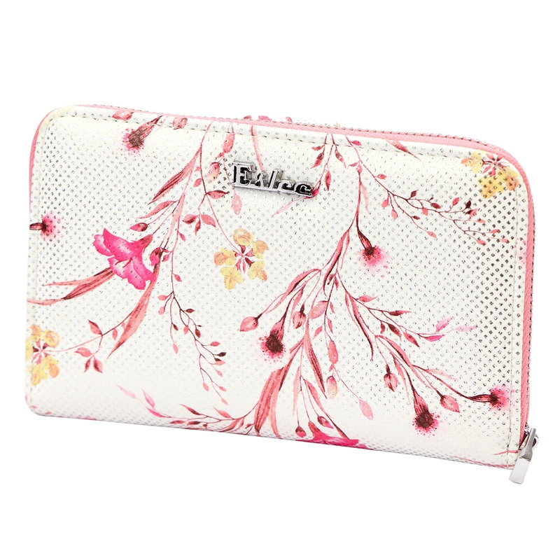 Portfel marki Eslee to stylowy dodatek dla kobiet ceniących zarówno modny design, jak i praktyczność. Wykonany z wysokiej jakości skóry ekologicznej o subtelnym kwiatowym wzorze, prezentuje się niezwykle elegancko. Srebrne okucia dodają mu szykownego charakteru, doskonale komponując się z jego estetyką.