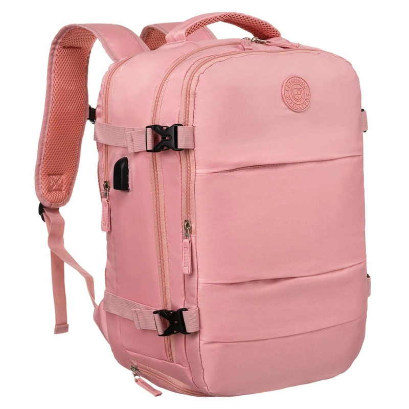 Różowy plecak podróżny z portem USB wykonany z poliestru - Peterson