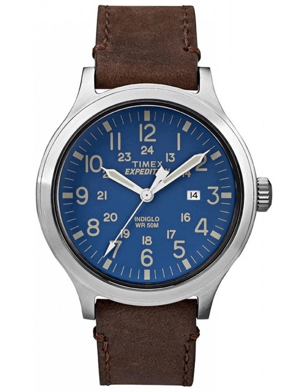 Zegarek Timex Expedition TW4B06400 to czasomierz idealny dla mężczyzny lubiącego uniwersalne dodatki, pasujące zarówno do sportowego stroju, jak i na co dzień. Posiada on oryginalny, skórzany pasek w kolorze brązowym. Srebrną kopertę wykonano z wysokiej jakości stali szlachetnej. Tarcza zegarka jest niebieska, a umieszczone na niej wskazówki, cyfry i indeksy mają barwę zbliżoną do korpusu czasomierza. Takie połączenie sprawia, że zegarek jest wyjątkowo czytelny. Dodatkowo wskaźniki na cyferblacie są fluorescencyjne, więc nawet w słabym oświetleniu czas będzie widoczny. Zegarek wyposażono również w charakterystyczne dla Timexa podświetlenie Indiglo, uruchamiane po wciśnięciu koronki. Model Expedition TW4B06400 został wyposażony w datownik dni miesiąca, zlokalizowany przy godzinie trzeciej, a także w oryginalne, dodatkowe indeksy, ułatwiające odczytanie godziny w trybie 24-godzinnym. Mechanizm przykrywa szkiełko mineralne, odporne na zarysowania i stłuczenia. Zegarek TW4B06400 działa w oparciu o niesłychanie precyzyjny mechanizm kwarcowy, zasilany baterią. Wodoszczelność została ustalona na 50 metrów, co oznacza, że do wnętrza czasomierza nie dostanie się woda w przypadku zachlapań.