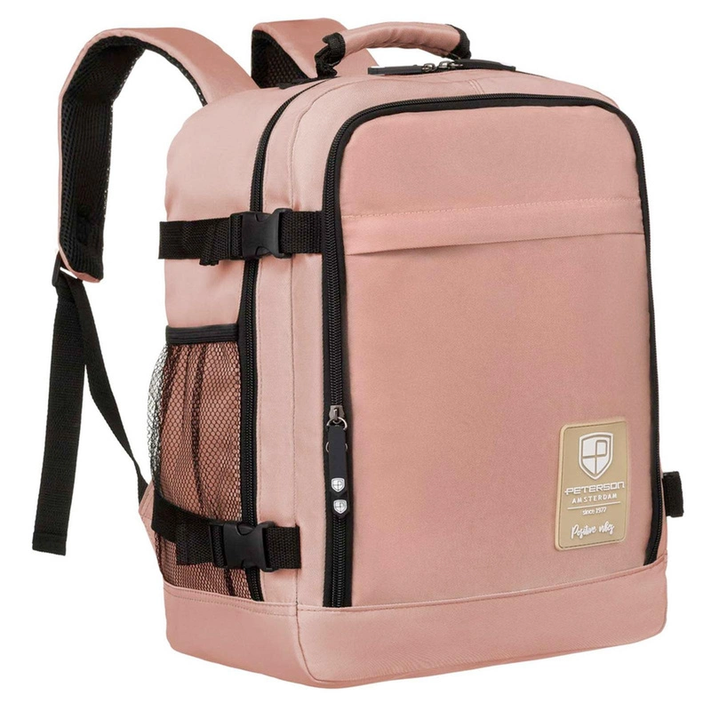 Pojemny, podróżny plecak kabinowy z portem USB w różowym kolorze - Peterson