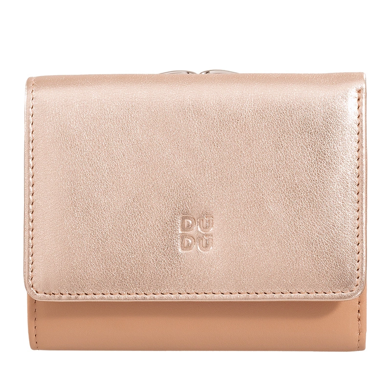Portfel marki Dudu to doskonały wybór dla kobiet ceniących styl i wygodę w jednym. Wykonany z wysokogatunkowej naturalnej skóry, wyróżnia się nie tylko starannym wykonaniem, ale i nowoczesnym, przyciągającym wzrok detalem – metaliczną klapą, która dodaje mu szyku i charakteru.