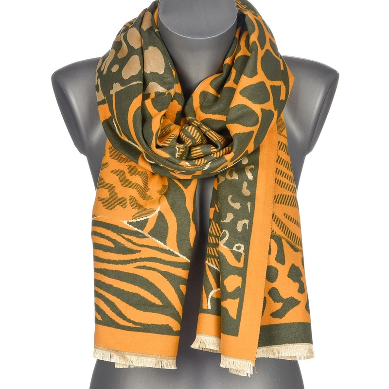 Modny, duży, przyjemny w dotyku szalik damski dwustronny z nietypowym wzorem w cętki- idealnie dopełni każdą elegancką i casualową stylizację