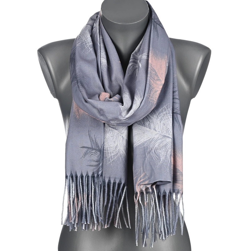 Szary Piękny elegancki szalik damski szal ciepły modny wzór frędzle RC-6