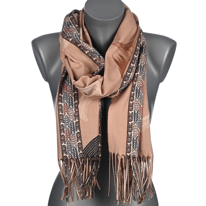 Brązowy Piękny elegancki szalik damski szal ciepły modny wzór frędzle RC-9