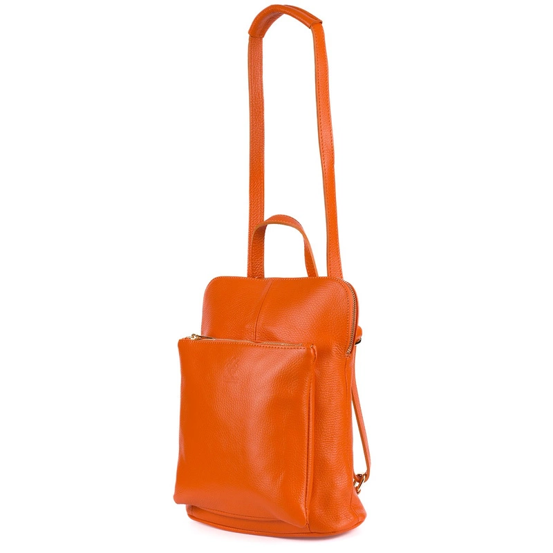 Skórzany plecak damski torba 2w1 elegancki A4 włoski pojemny pomarańczowy Vera Pelle S40