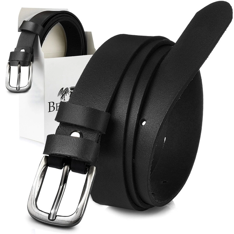Piękny, skórzany, damski pasek do spodni marki Beltimore. Jest wytrzymały, solidny i w uniwersalnym czarnym kolorze.