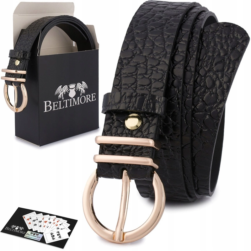 Skórzany pasek damski do spodni sukienki skóra croco czarna 3 cm Beltimore E55 : Kolory - czarny, Rozmiar pasków - r.80-95 cm