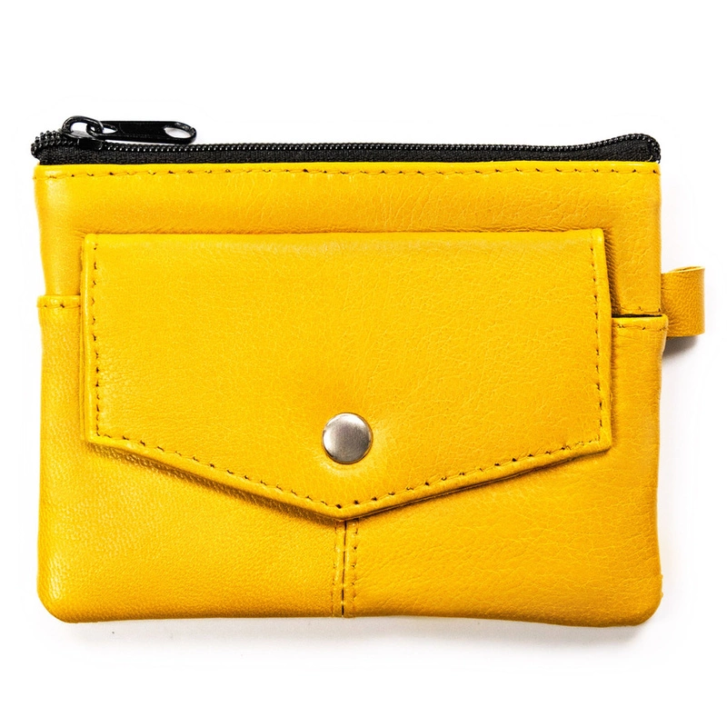 Żółte etui na klucze ze skóry naturalnej zamykane suwakiem