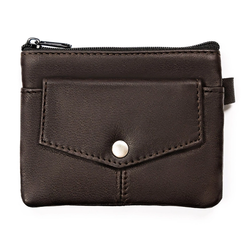 Etui ze skóry naturalnej w ciemno brązowym kolorze z kieszonkami na suwak
