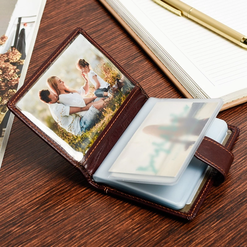 - Dwie dodatkowe przegrody wewnątrz po bokach na zdjęcie lub dodatkowe wizytówki