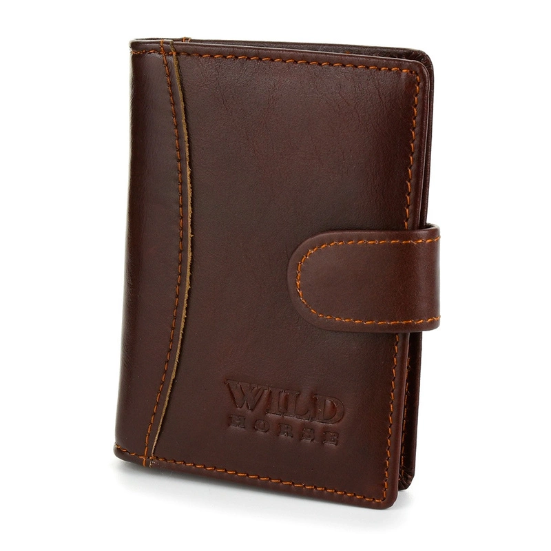 Wysokiej jakości, solidne, skórzane etui na wizytówki marki Wild Horse - dostępne w brązowym kolorze.