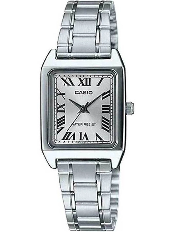Srebrna koperta z eleganckim połyskiem doskonale komponuje się ze srebrną bransoletą paskiem wykonaną ze stali szlachetnej, nadając zegarkowi wyjątkowy charakter. Ten model doskonale sprawdzi się zarówno jako dodatek do codziennego stroju, jak i jako subtelny akcent w bardziej formalnych stylizacjach. Zegarek CASIO LTP-V007D-7B to połączenie tradycji, precyzji i stylu, które podkreśli wyjątkowy gust każdej noszącej go kobiety.