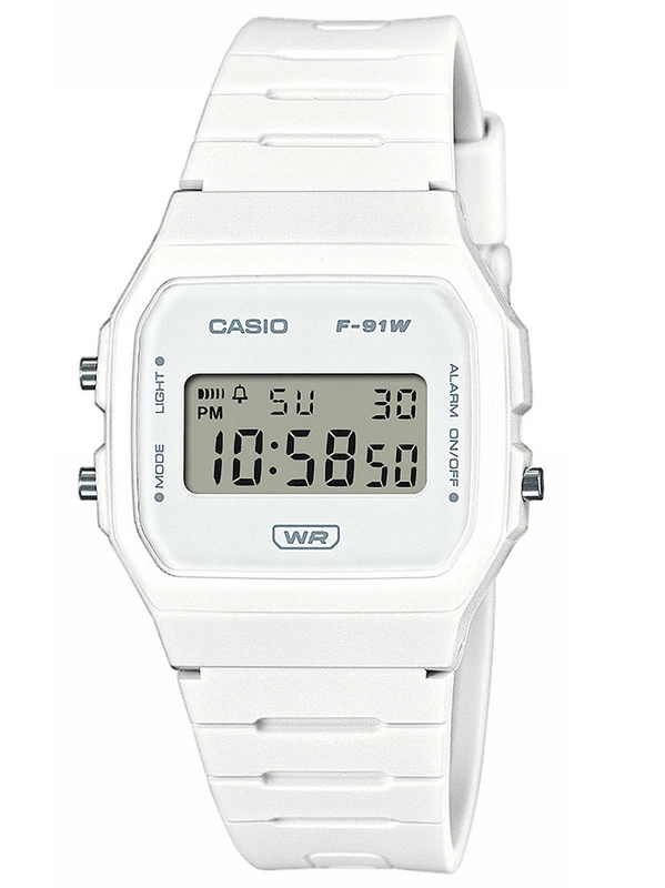 Casio F-91WB-7A zachwyca swoim minimalistycznym, retro designem. Biała koperta o prostokątnym kształcie oraz biała tarcza z cyfrowym wyświetlaczem LCD tworzą harmonijną całość, która przywołuje klimat lat 90. Lekki i kompaktowy, idealnie dopasowuje się do nadgarstka, zapewniając wygodę noszenia przez cały dzień. To zegarek, który doskonale sprawdzi się zarówno w casualowych, jak i sportowych stylizacjach.