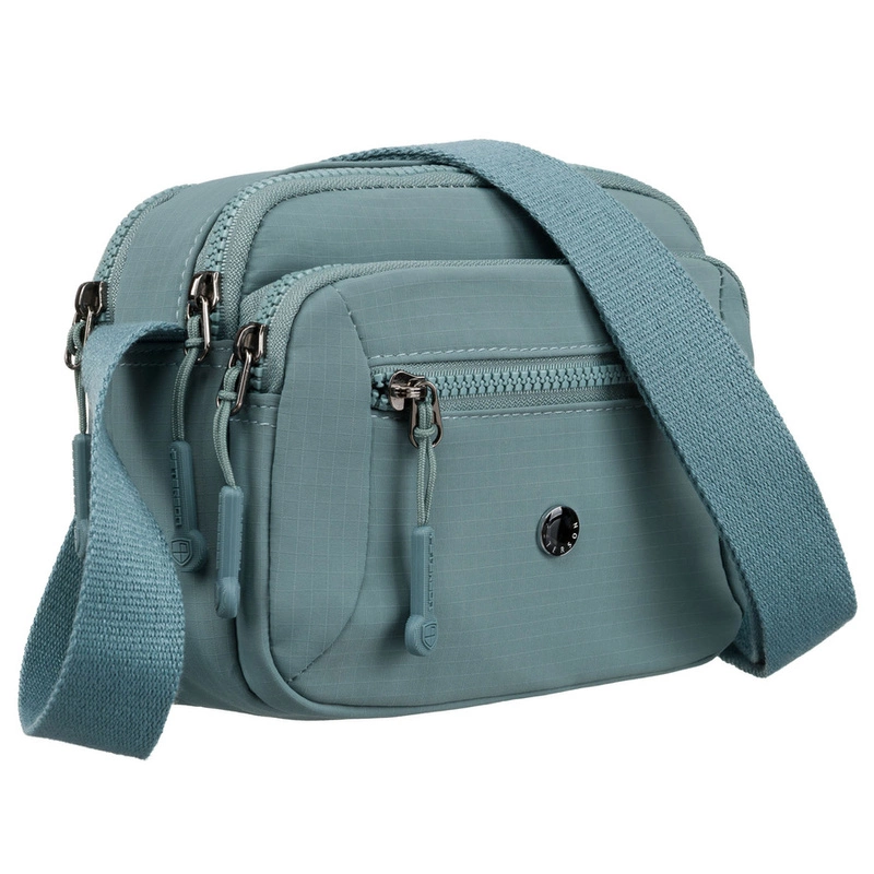 - Torebka damska wykonana z poliestru. Torebka w modnym, niebieskim kolorze. Dwukomorowa, wyposażona w 4 kieszenie, które pomagają w organizacji przedmiotów. Torebka zamykana suwakiem.