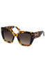 - okulary przeciwsłoneczne, plastikowa oprawka, kwadratowe szkła, brązowe szkła, kontrastowe detale, szerokość soczewek 53 mm, szerokość mostka 21 mm, długość zauszników 140 mm, logo