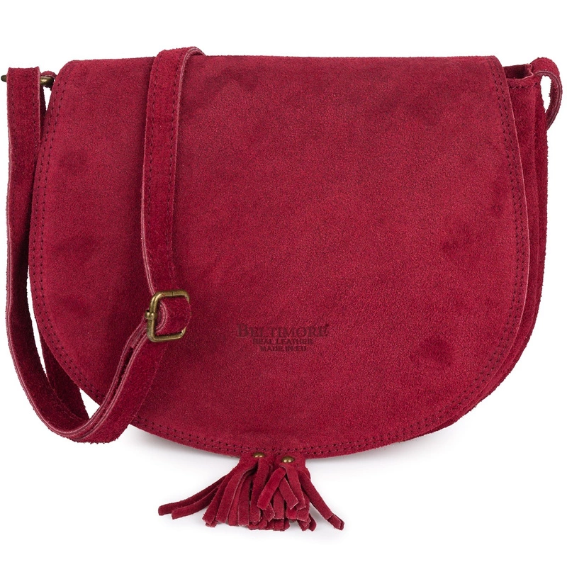 Torebka podkówka listonoszka zamszowa damska skóra włoska miękka bordowa B66