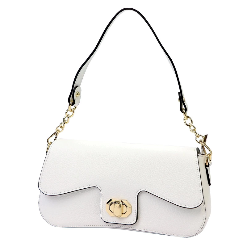 Torebka urzeka minimalistycznym stylem – gładka skóra naturalna bez wzoru nadaje jej klasyczny, ponadczasowy wygląd, a złote okucia dodają subtelnego blasku. Wykonana z naturalnej skóry, zapewnia trwałość i wyrafinowany charakter. Dwa skórzane paski – krótki do trzymania w ręku i dłuższy, regulowany do noszenia na ramieniu – pozwalają na dostosowanie jej do różnych potrzeb. Zapięcie klapą na zapinkę i suwakiem gwarantuje bezpieczeństwo i estetyczny wygląd.