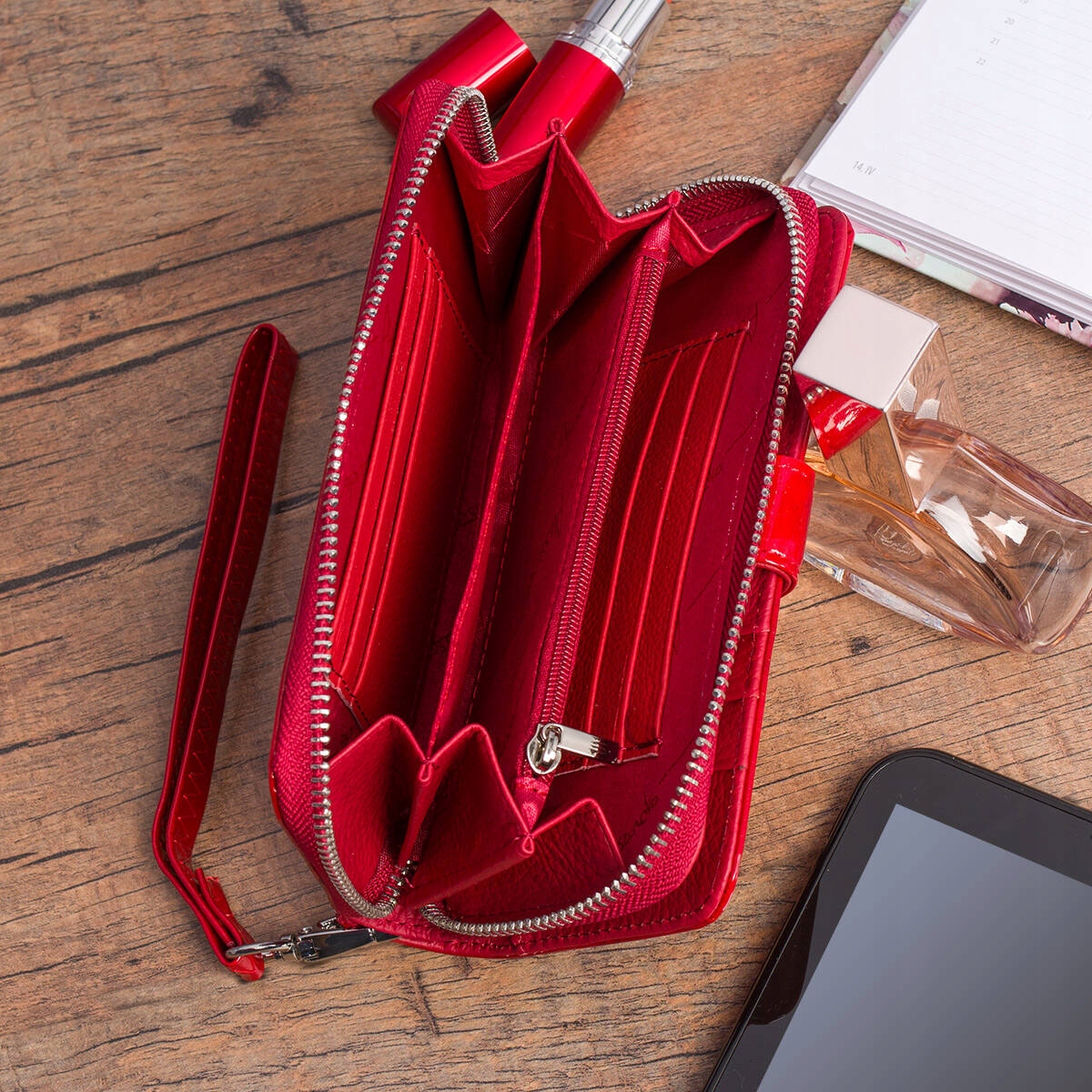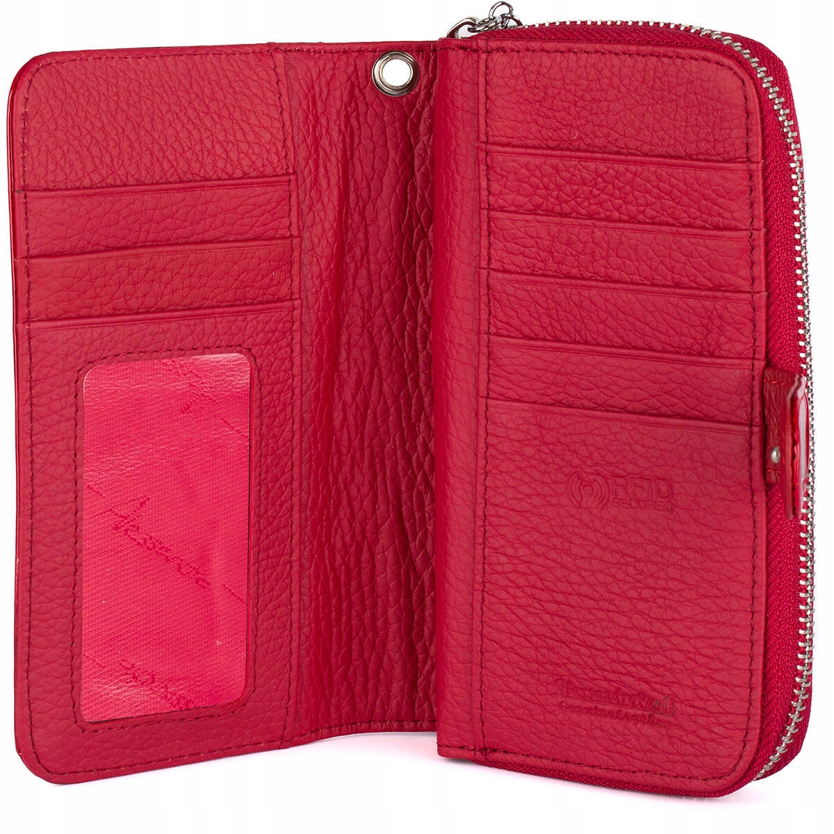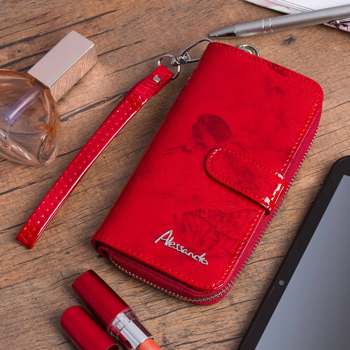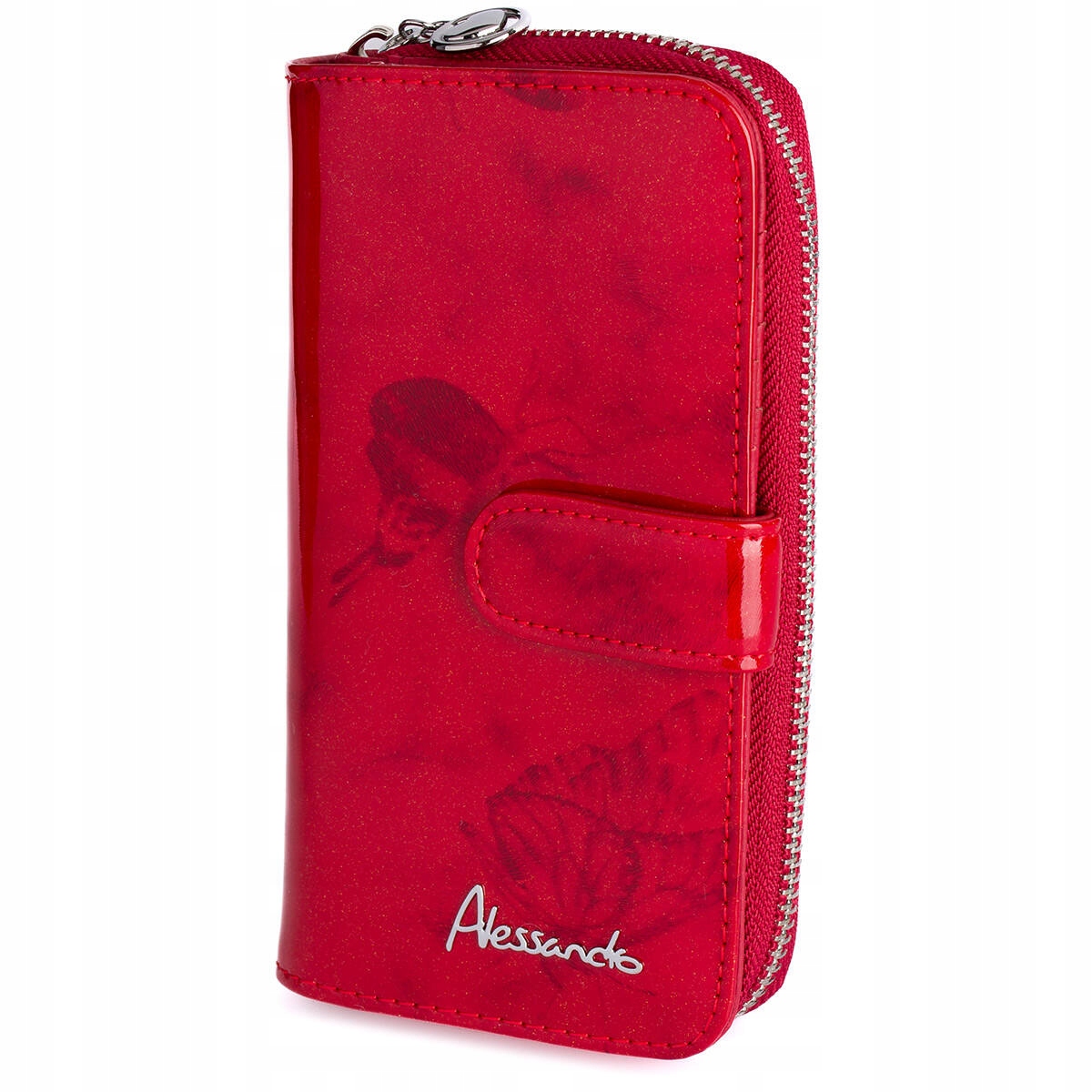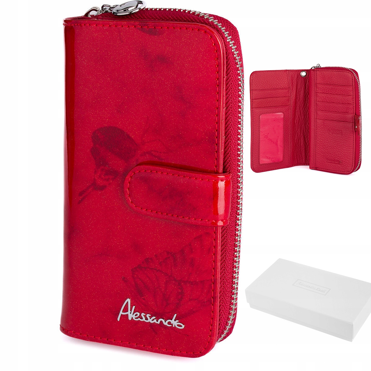 Portfel skórzany damski czerwony duży na zamek motyl lakierowany Alessandro