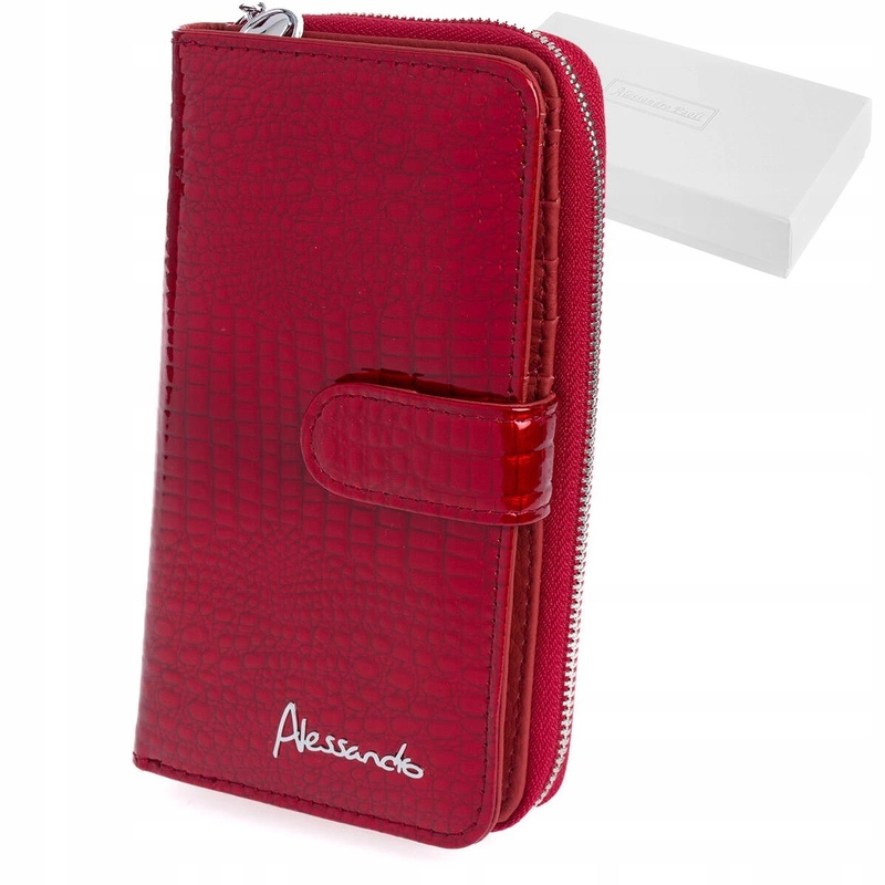 Portfel skórzany damski lakierowany duży dwuczęściowy czerwony Alessandro