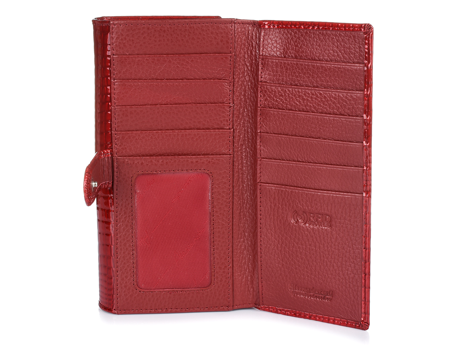 Portfel skórzany damski lakierowany duży dwuczęściowy czerwony Alessandro