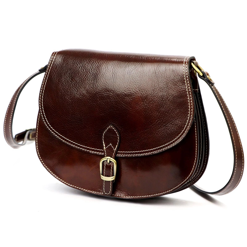 Dwukomorowa stylowa Skórzana damska listonoszka przez ramię Florence
