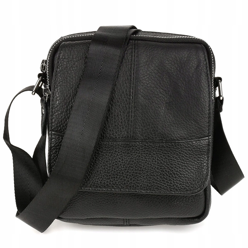 Czarna torba męska skórzana Beltimore mała na pasek pojemna klapa F56
