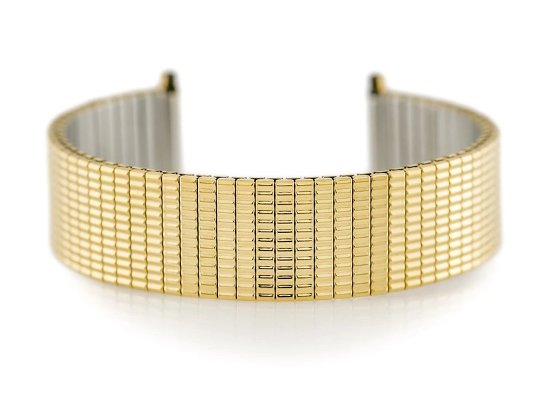 Metalowa bransoletka wysokiej jakości w kolorze złotym z możliwością rozciągnięcia oraz z regulacją szerokości mocowania.
