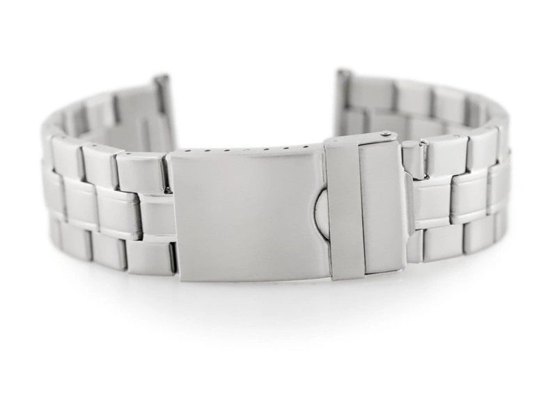 Stalowa bransoleta do zegarka wysokiej jakości w kolorze srebrnym.