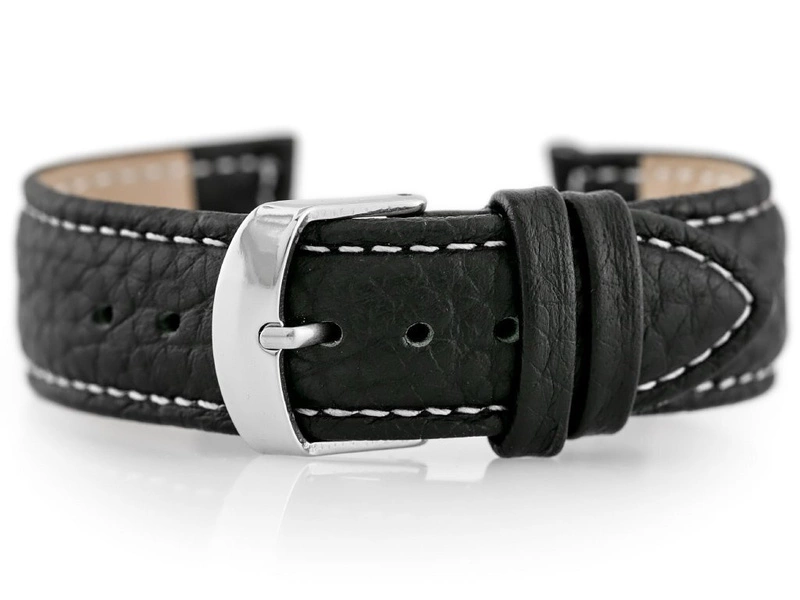 Pasek skórzany do zegarka W71 - czarny/biały - 18mm
