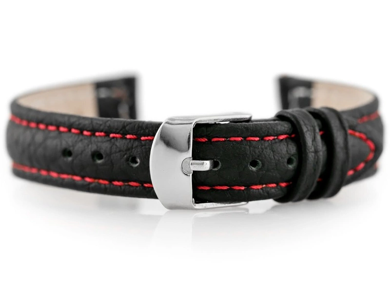 Pasek skórzany do zegarka W71 - czarny/czerwony - 12mm