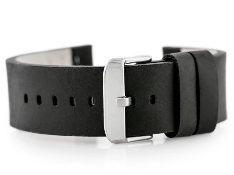 Pasek skórzany do zegarka W39 - czarny/biały 22mm