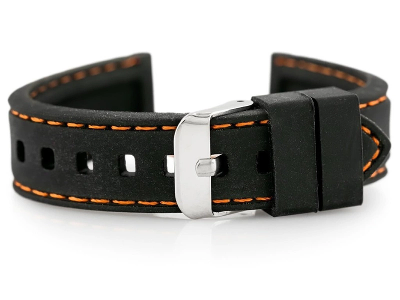 Pasek gumowy do zegarka U20 - czarny/pomarańczowe 18mm