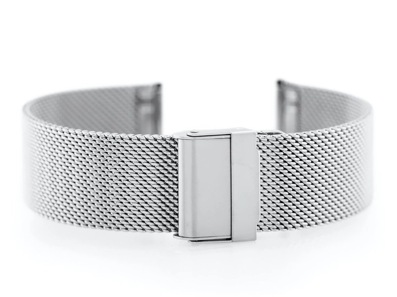 Stalowa bransoletka do zegarka typu 'siatka' wysokiej jakości w kolorze srebrnym
