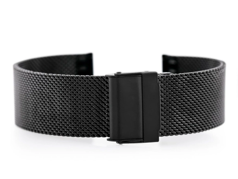 Stalowa bransoletka do zegarka typu 'siatka' wysokiej jakości w kolorze czarnym. Powlekana metodą PVD