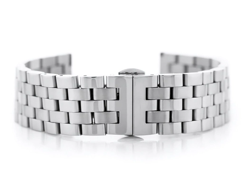 Stalowa bransoletka z zapięciem motylkowym do zegarka wysokiej jakości w kolorze srebrnym.