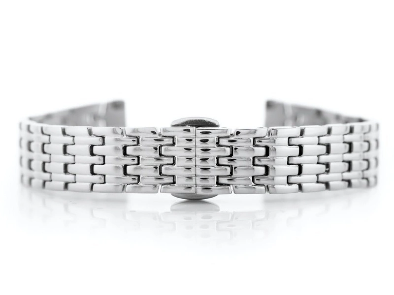 Stalowa bransoletka z zapięciem motylkowym do zegarka wysokiej jakości w kolorze srebrnym.