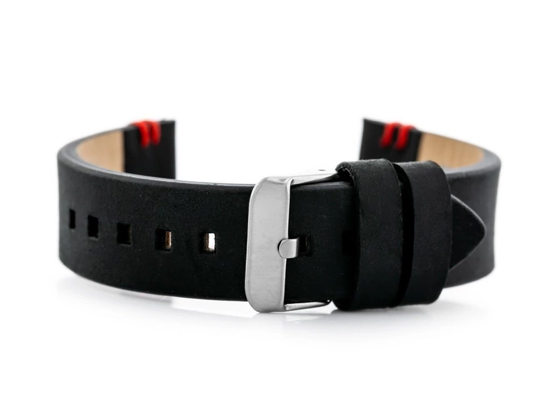 Pasek skórzany do zegarka W110 - czarny/czerwone - 22mm