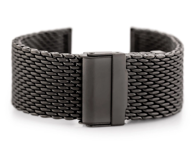 Stalowa bransoletka do zegarka typu 'siatka' wysokiej jakości w kolorze grafitowym, wykończenie matowe