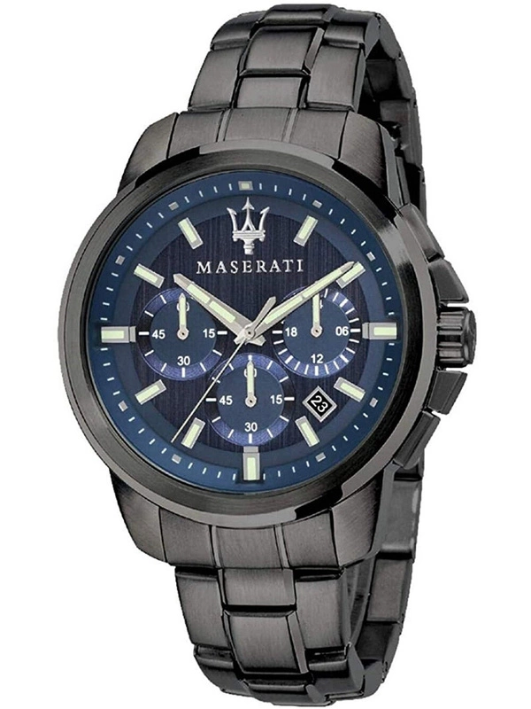 Zegarek Maserati R8873621005 to elegancki i nowoczesny zegarek męski. Na granatowej tarczy ze srebrnymi indeksami zabezpieczonej mineralnym szkłem znajdziemy datownik wskazujący dzień miesiąca oraz subtarcze będące wskazaniami chronografu i czasu dobowego.