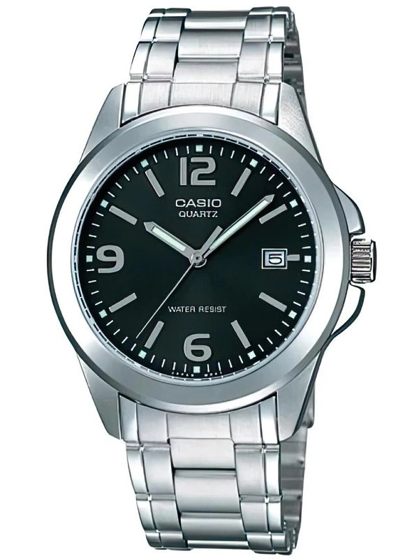 Zegarek Męski Casio MTP-1215A-1ADF to doskonały wybór dla mężczyzn, którzy cenią elegancję, funkcjonalność i niezawodność w jednym. Jego klasyczny design, połączony z nowoczesnymi rozwiązaniami, sprawia, że idealnie komponuje się zarówno z codziennymi stylizacjami, jak i bardziej formalnymi zestawami. Koperta zegarka wykonana z szlachetnej stali w kolorze srebrnym, która doskonale współgra z czarną tarczą, nadając całości subtelnej elegancji. W centralnej części tarczy umieszczono wyraźne, srebrne wskazówki oraz indeksy, które zapewniają świetną czytelność, nawet w słabym świetle. Dodatkowo, na godzinie 3 znajduje się okno daty, które stanowi praktyczny element tego modelu.