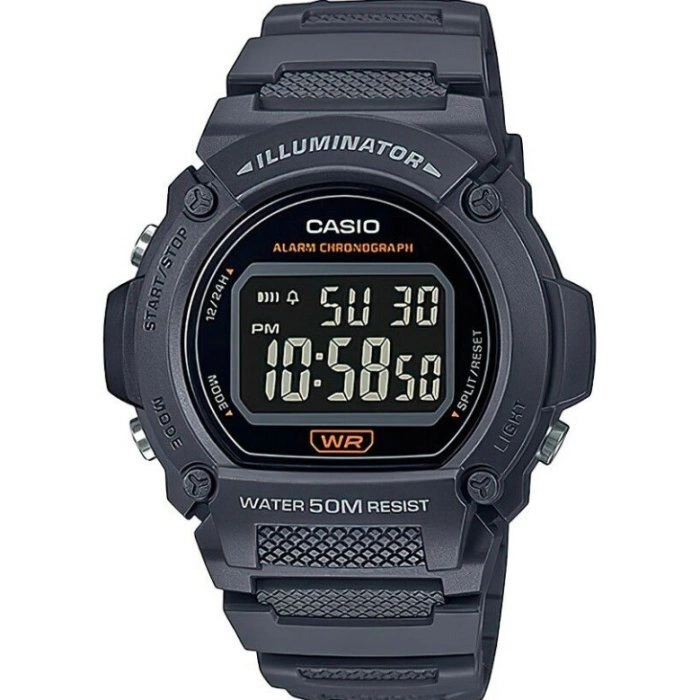 Casio W-219H-8BVEF to zegarek, który doskonale sprawdzi się zarówno na co dzień, jak i podczas bardziej aktywnych chwil. Dzięki wodoodporności do 50M, możesz być spokojny o jego działanie nawet w przypadku kontaktu z wodą. Mechanizm kwarcowy, znany z niezawodności i precyzji, gwarantuje, że czas zawsze będzie na Twojej stronie. To czasomierz, który nie tylko pokazuje godzinę, ale także podkreśla Twój praktyczny i nieco nostalgiczny styl.