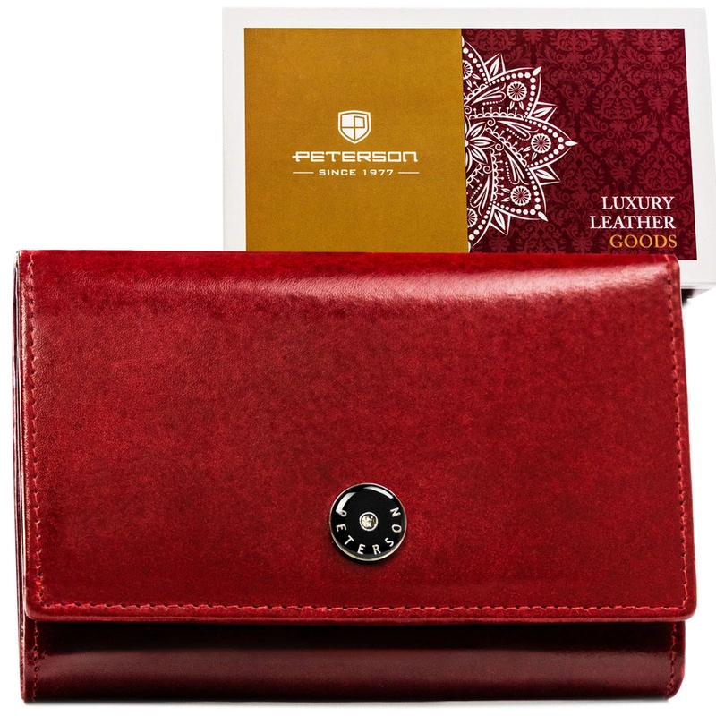 Skórzany portfel damski w czerwonym kolorze zamykany klapką na zatrzask - Peterson
